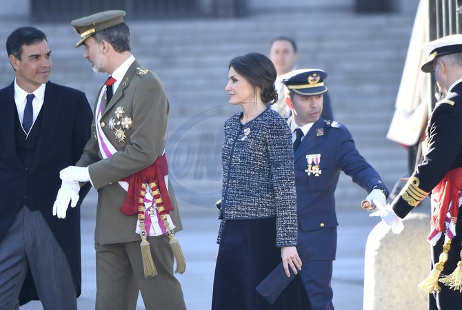 Krolowa Letizia i krol Filip podczas tradycyjnej parady wojskowej