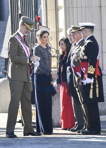 Krolowa Letizia i krol Filip podczas tradycyjnej parady wojskowej