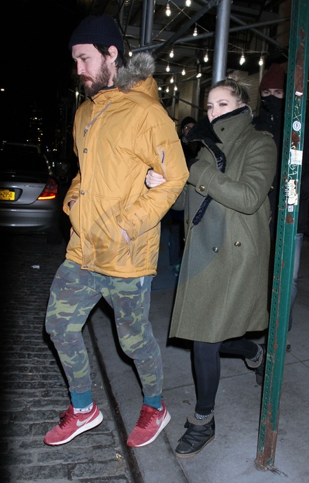Kate Hudson i jej partner Danny Fujikawa wychodza z hotelu