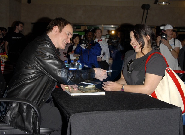 Quentin Tarantino podpisuje swoja plyte.