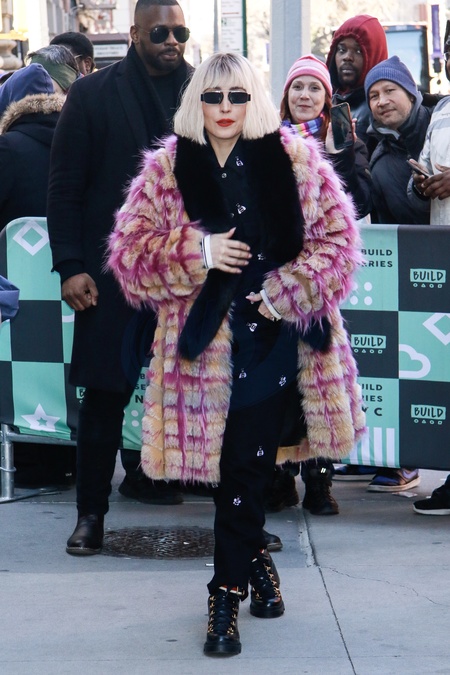 Noomi Rapace w rozowo zoltym futrze
