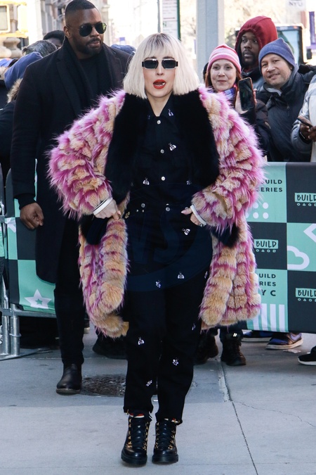 Noomi Rapace w rozowo zoltym futrze