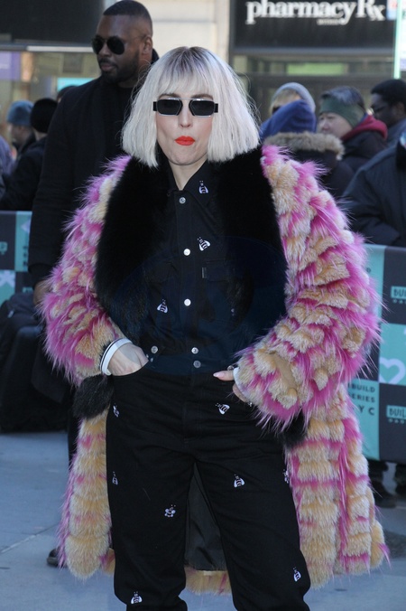 Noomi Rapace w rozowo zoltym futrze