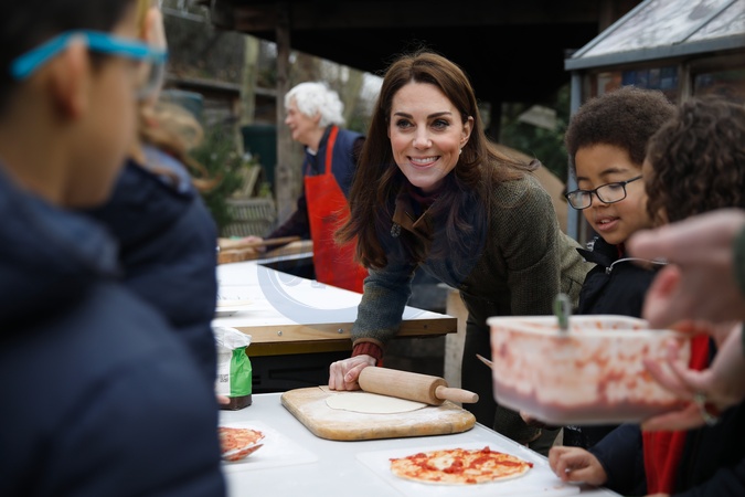 Ksiezna Kate robi z przedszkolakami pizze i prace plastyczne