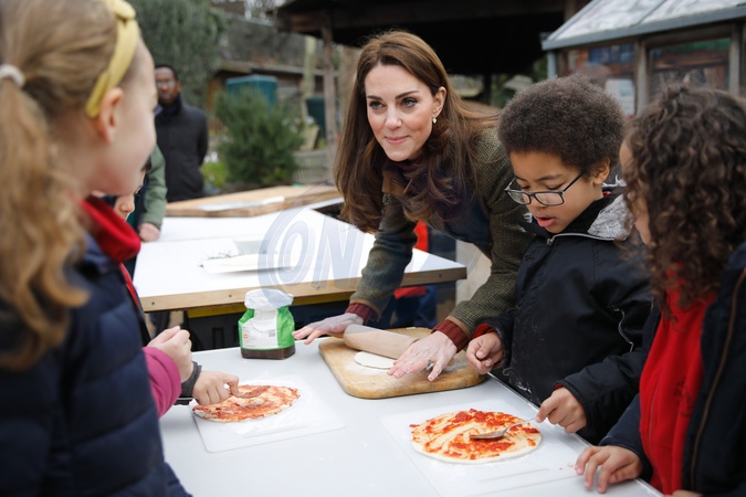 Ksiezna Kate robi z przedszkolakami pizze i prace plastyczne