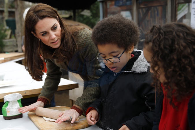 Ksiezna Kate robi z przedszkolakami pizze i prace plastyczne