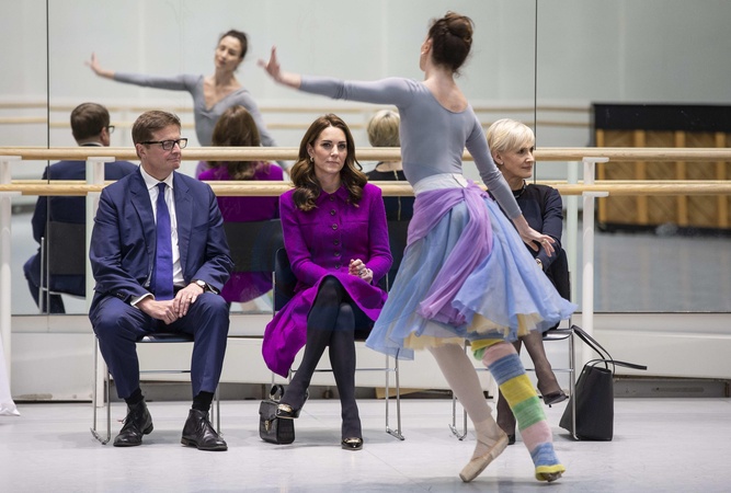 Ksiezna Kate w fioletowej garsonce odwiedzila Costume Department w The Royal Opera House