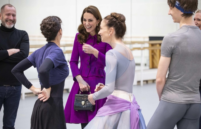 Ksiezna Kate w fioletowej garsonce odwiedzila Costume Department w The Royal Opera House