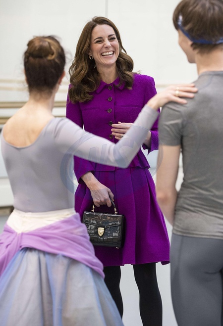 Ksiezna Kate w fioletowej garsonce odwiedzila Costume Department w The Royal Opera House