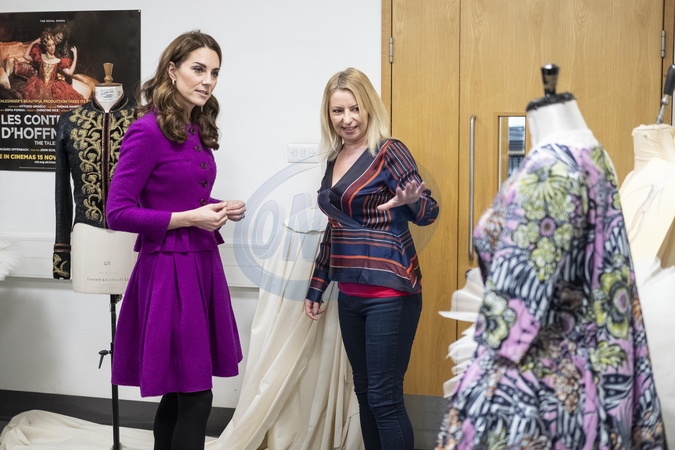 Ksiezna Kate w fioletowej garsonce odwiedzila Costume Department w The Royal Opera House