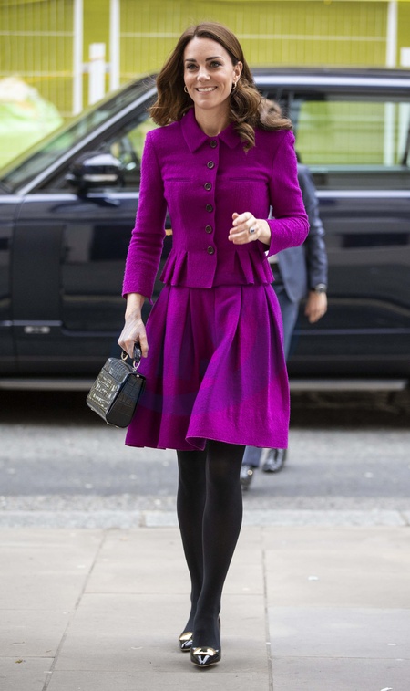 Ksiezna Kate w fioletowej garsonce odwiedzila Costume Department w The Royal Opera House