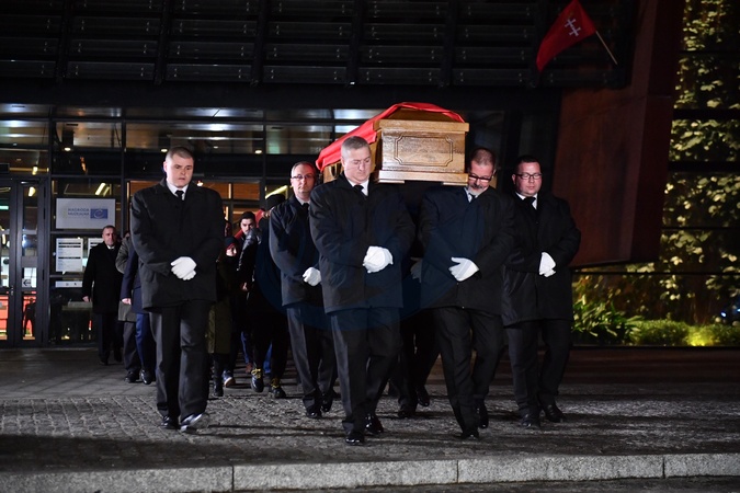 Wyprowadzenie trumny z cialem Prezydenta Pawla Adamowicza