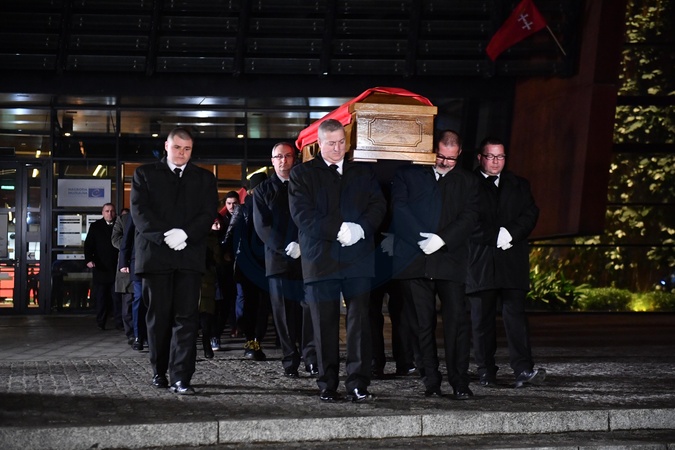 Wyprowadzenie trumny z cialem Prezydenta Pawla Adamowicza