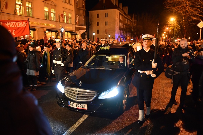 Wyprowadzenie trumny z cialem Prezydenta Pawla Adamowicza