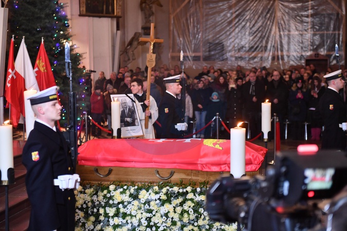 Wyprowadzenie trumny z cialem Prezydenta Pawla Adamowicza