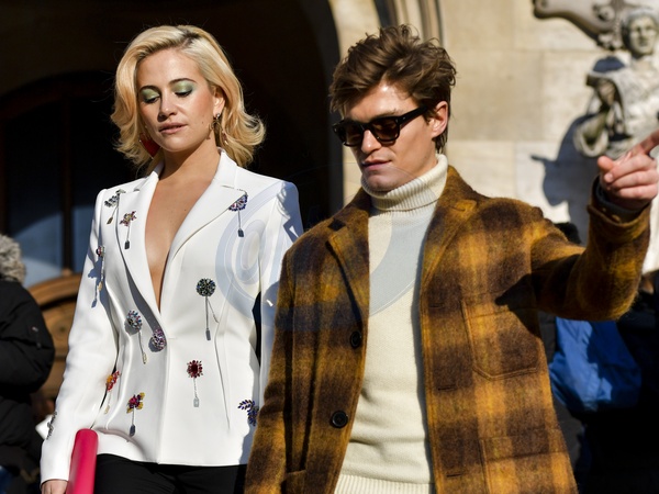 Goscie wracaja z pokazu Schiaparelli, Paryz