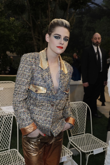 Kristen Stewart w zlotych spodniach na drugim pokazie Chanel, Paryz