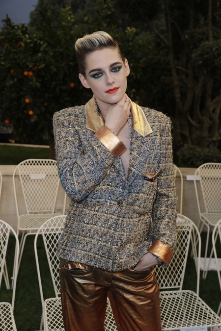 Kristen Stewart w zlotych spodniach na drugim pokazie Chanel, Paryz
