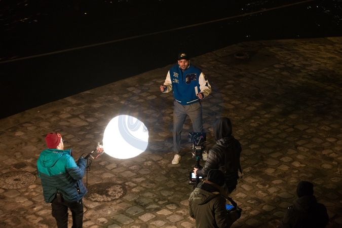 Chris Brown na planie video clipu nad brzegiem Sekwany