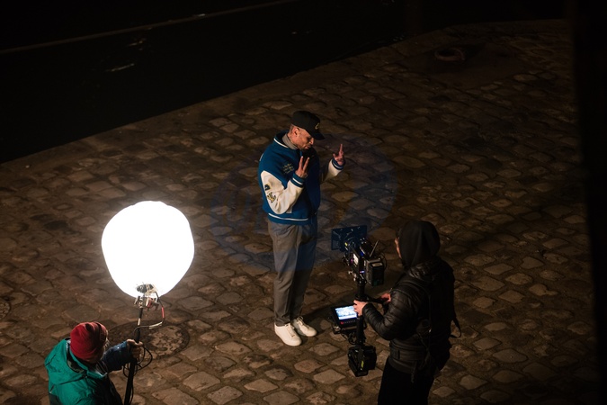Chris Brown na planie video clipu nad brzegiem Sekwany