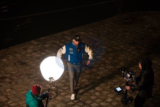 Chris Brown na planie video clipu nad brzegiem Sekwany