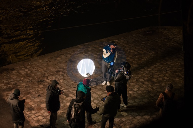 Chris Brown na planie video clipu nad brzegiem Sekwany
