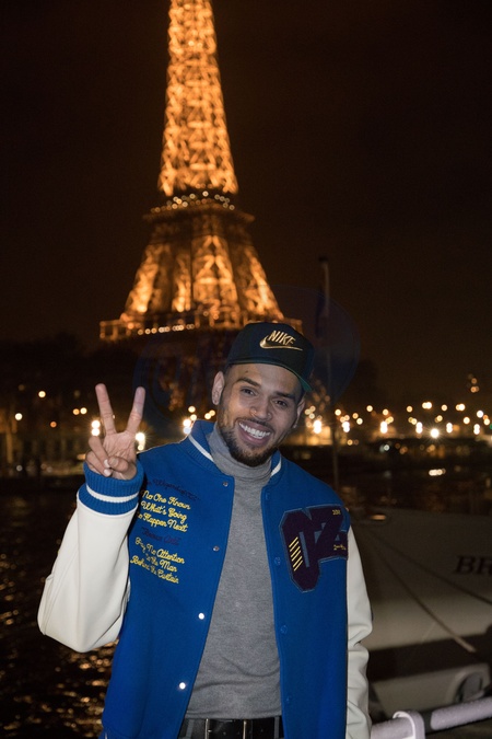 Chris Brown na planie video clipu nad brzegiem Sekwany