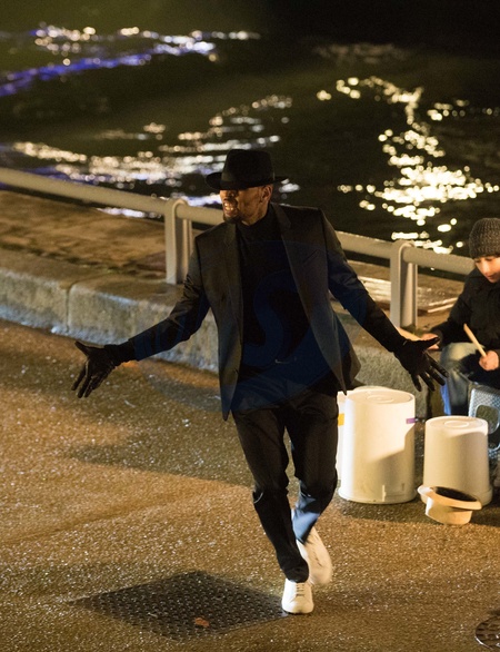 Chris Brown na planie video clipu nad brzegiem Sekwany