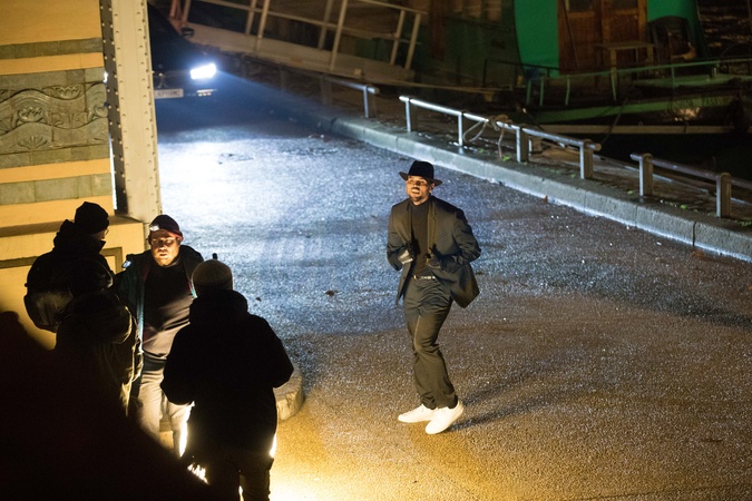Chris Brown na planie video clipu nad brzegiem Sekwany