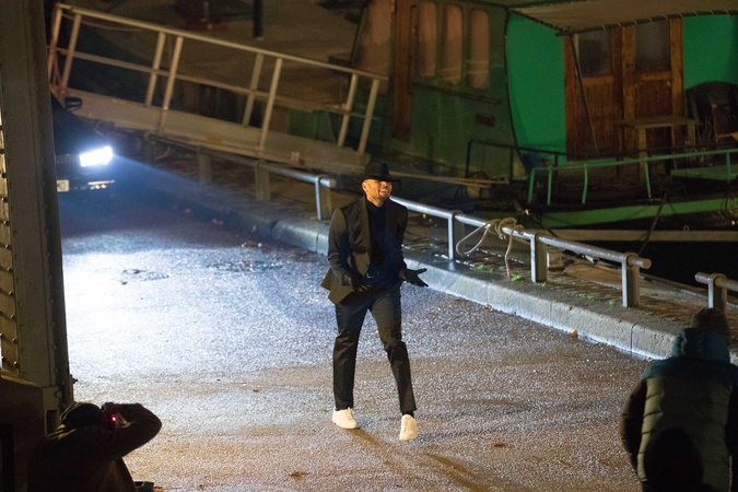 Chris Brown na planie video clipu nad brzegiem Sekwany
