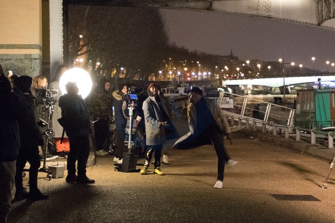 Chris Brown na planie video clipu nad brzegiem Sekwany
