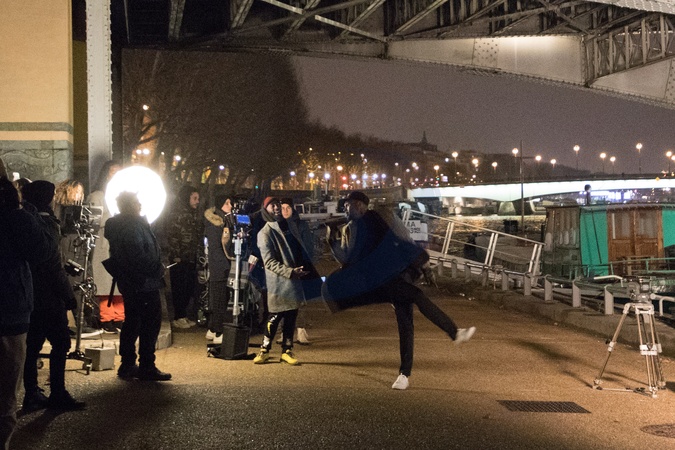 Chris Brown na planie video clipu nad brzegiem Sekwany