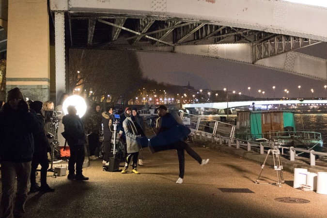 Chris Brown na planie video clipu nad brzegiem Sekwany