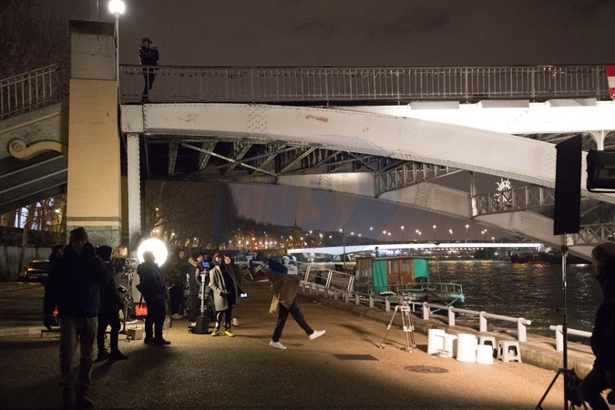 Chris Brown na planie video clipu nad brzegiem Sekwany