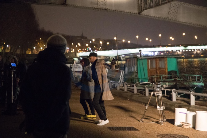 Chris Brown na planie video clipu nad brzegiem Sekwany