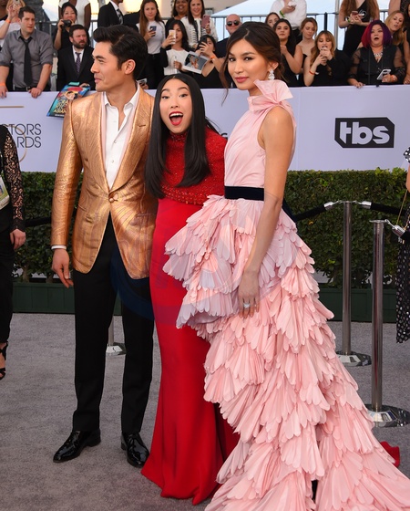 Henry Golding, Awkwafina and Gemma Chan.JPG