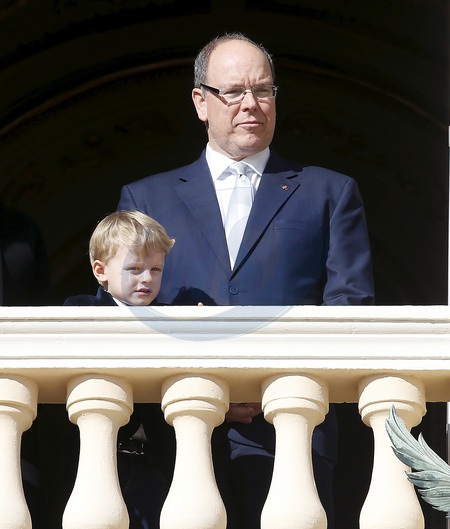 Ksiaze Albert z zona Charlene i z synem na obchodach Sainte Devote