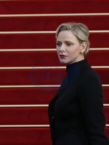 Ksiaze Albert z zona Charlene i z synem na obchodach Sainte Devote