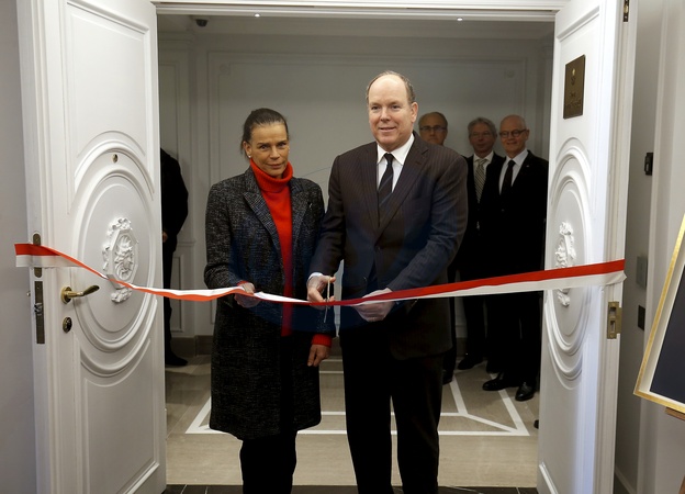 Ksiaze Albert i ksiezna Stephanie na otwarciu apartamentu Rainier III Suite w Hotel de Paris