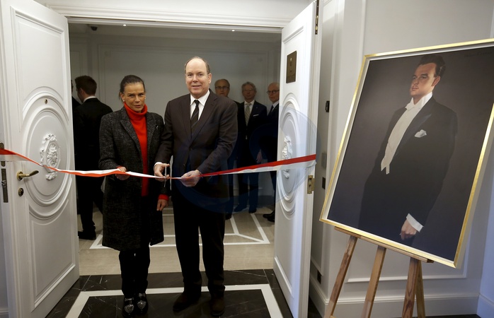 Ksiaze Albert i ksiezna Stephanie na otwarciu apartamentu Rainier III Suite w Hotel de Paris