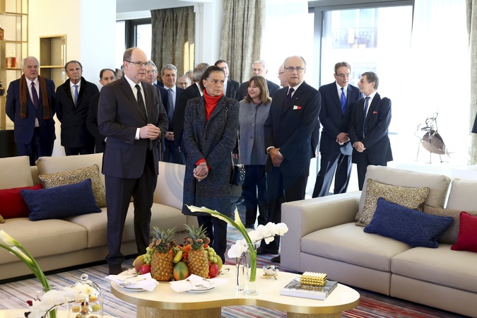 Ksiaze Albert i ksiezna Stephanie na otwarciu apartamentu Rainier III Suite w Hotel de Paris