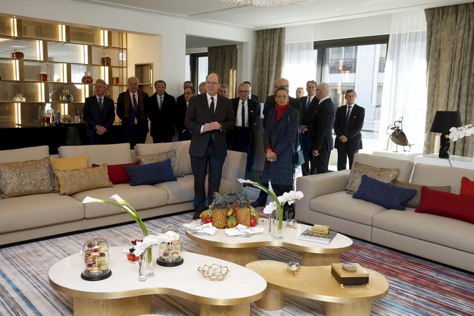 Ksiaze Albert i ksiezna Stephanie na otwarciu apartamentu Rainier III Suite w Hotel de Paris