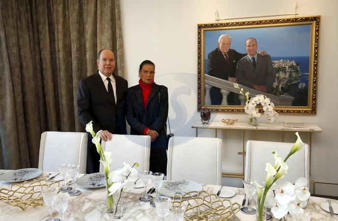 Ksiaze Albert i ksiezna Stephanie na otwarciu apartamentu Rainier III Suite w Hotel de Paris
