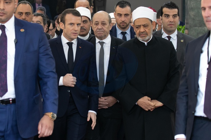 Emmanuel Macron, Jean-Yves Le Drian, Ahmed Al-Tayeb 11.jpg