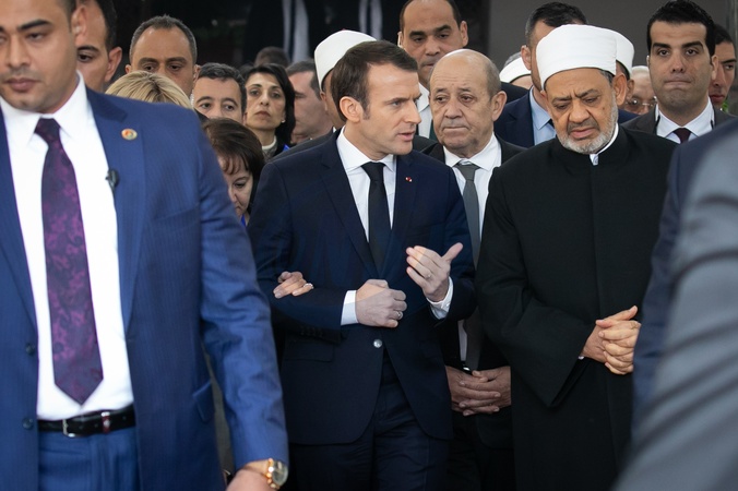 Emmanuel Macron, Jean-Yves Le Drian, Ahmed Al-Tayeb 12.jpg