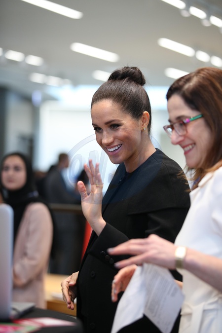 Ksiezna Meghan w czerni podczas wizyty w Association of Commonwealth Universities