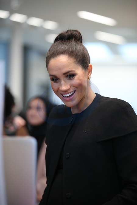 Ksiezna Meghan w czerni podczas wizyty w Association of Commonwealth Universities
