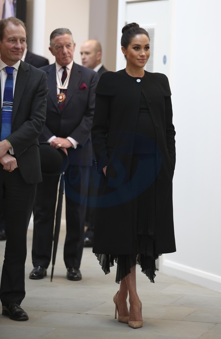 Ksiezna Meghan w czerni podczas wizyty w Association of Commonwealth Universities