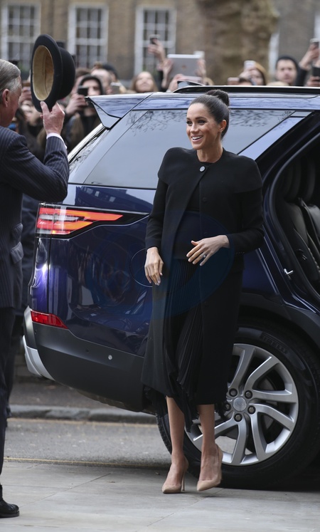 Ksiezna Meghan w czerni podczas wizyty w Association of Commonwealth Universities