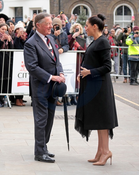 Ksiezna Meghan w czerni podczas wizyty w Association of Commonwealth Universities
